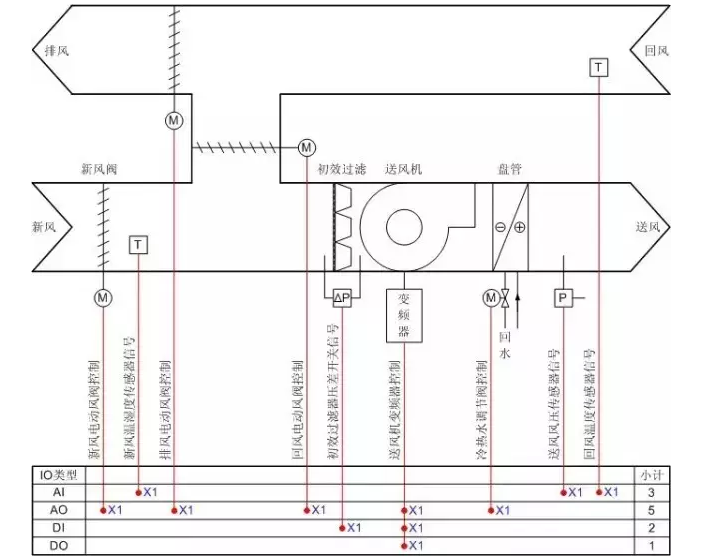 2) 設(shè)備的保護(hù),自動維護(hù)等,例如過濾器的壓差報(bào)警,提示及時(shí)清洗堵塞的過濾網(wǎng),再如風(fēng)機(jī)和加熱器的連鎖控制,風(fēng)機(jī)關(guān)了,加熱器必須自動關(guān)閉,否則可能引起火災(zāi)等。
